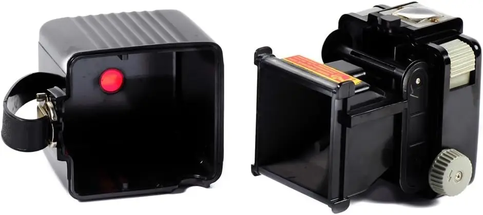 The Brownie Hawkeye offers robustness through its solid bakelite body, making it durable for field use. Its large negative size contributes to image detail superior to many smaller formats of the time. The fixed-focus lens simplifies operation, ideal for quick snapshot photography without manual adjustments. The camera's simple mechanisms ensure low maintenance and high reliability. It is lightweight and portable compared to earlier box cameras. Additionally, the camera’s design and accessibility made photography affordable for the mass market in the 1950s.