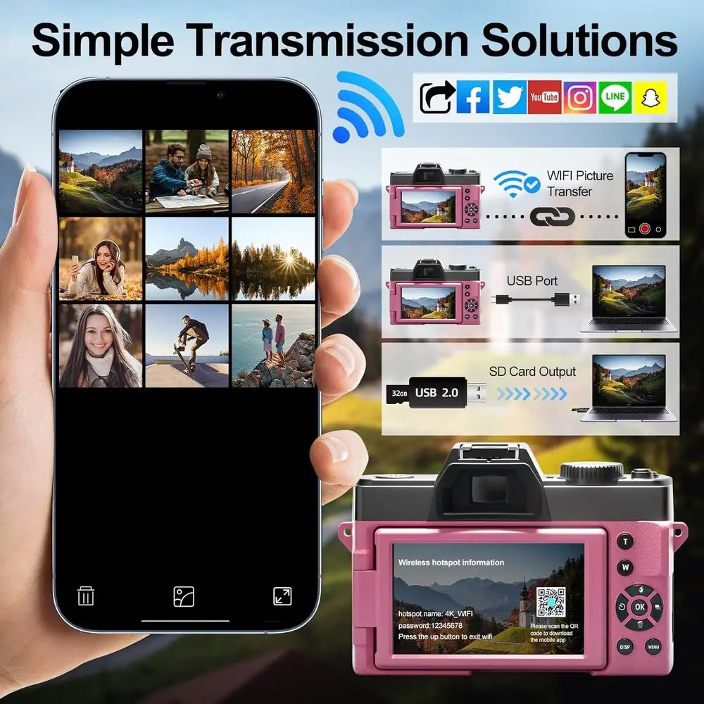 The camera supports USB 2.0 connectivity for easy transfer of images and videos to a computer.