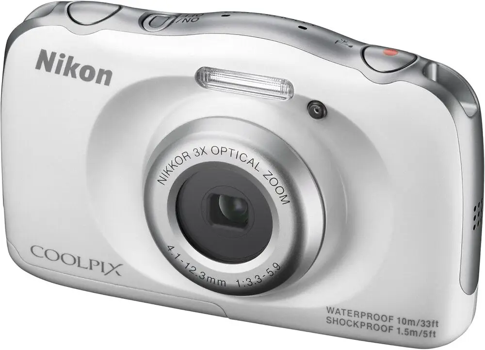 The Nikon COOLPIX S33WH is a compact waterproof digital camera designed for outdoor and underwater photography. It features a 13.2-megapixel CCD sensor and a 3x optical zoom lens, offering clear and vibrant images. The camera supports 720p HD video recording at 30 fps, enabling smooth motion capture. It includes a 2.7-inch LCD display for easy framing and playback. The S33WH is waterproof up to 10 meters (33 feet), shockproof from drops up to 1.2 meters, and freezeproof to -10°C, making it suitable for rugged use. Its simple interface is tailored for beginners and family use, with dedicated scene modes and creative effects.