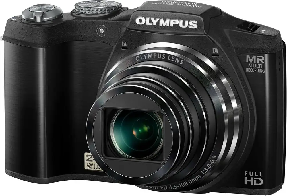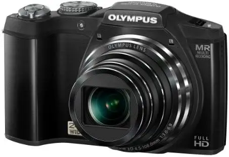 The Olympus SZ-31MR is a compact digital camera designed with a 16-megapixel BSI CMOS sensor, allowing for clear and detailed image capture. It incorporates a 24x optical zoom lens with a focal length range from 25mm wide-angle to 600mm telephoto, offering versatile shooting options. The camera supports full HD 1080p video recording at 30fps, equipped with stereo sound, making it suitable for multimedia use. It includes a 3-inch LCD display for live preview and image review, facilitating easy framing and navigation. For focusing, it uses Contrast Detect autofocus technology, supporting Face detection and tracking for accurate subject capture. The SZ-31MR also features built-in GPS functionality to geotag photos and utilizes AA batteries for power, supporting extended shooting sessions.