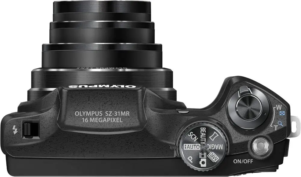 Despite its strong zoom capabilities, the Olympus SZ-31MR's image quality may not match that of larger-sensor cameras especially in very low light. The reliance on AA batteries can be less efficient compared to rechargeable lithium-ion batteries, potentially impacting battery life and weight. The camera's autofocus system, while decent, is slower compared to phase-detection systems typical in higher-end models. Limited manual controls may restrict advanced photographic techniques for professional users. The video recording frame rate is limited to 30fps at 1080p, lacking higher speed options. The camera's build is primarily plastic, which may affect durability in harsh conditions.