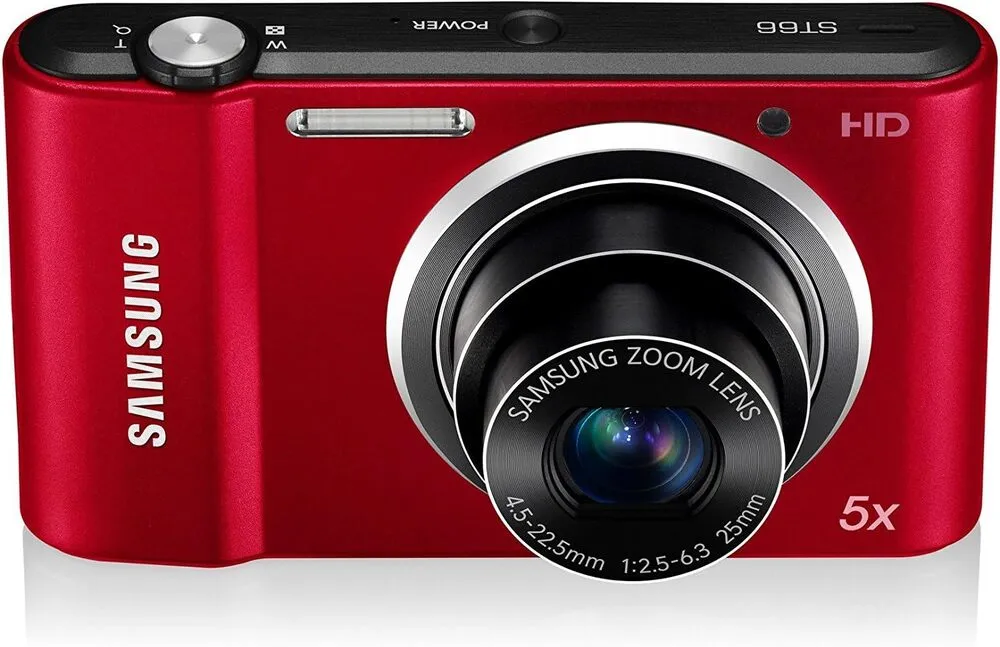 The Samsung ST66 is a compact point & shoot digital camera that features a 16.2-megapixel CCD sensor, providing high-resolution images suitable for everyday photography. It is equipped with a 5x optical zoom lens, enhancing the ability to capture distant subjects with clarity. The camera supports various shooting modes including Smart Auto mode which intelligently adjusts settings for optimal shots. Video recording capabilities are available in HD 720p resolution, providing decent quality video capture. The device incorporates a 2.7-inch LCD display for easy framing and playback of images. The camera also supports SD/SDHC cards for expandable storage and uses AA batteries as its power source, giving users flexibility in power options.