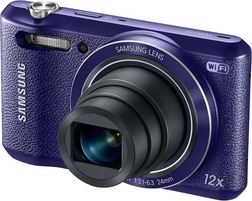 The Samsung WB35F stands out for its extensive 21x optical zoom lens, significantly extending creative flexibility for close-ups and wide-angle shots. Its 16.2MP BSI CMOS sensor improves image quality in low-light conditions compared to conventional sensors. Integrated Wi-Fi offers convenient wireless transfer and remote shooting capabilities, enhancing connectivity for modern users. The full HD 1080p video feature supports high-quality movie recording with stereo audio. The camera's compact form factor makes it highly portable. Lastly, the variety of scene modes and automatic features ensures excellent photos for beginners and enthusiasts alike.