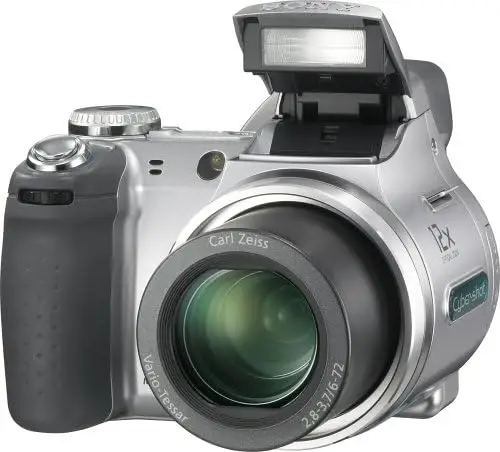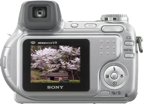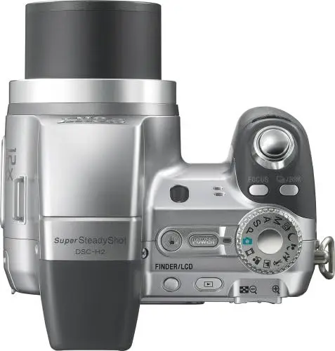The Sony Cybershot DSC-H2 is a 5-megapixel digital camera featuring a 4x optical zoom Carl Zeiss Vario-Tessar lens, enabling versatile framing from wide-angle to telephoto. It employs a 1/2.7-inch Super HAD CCD sensor that delivers detailed and vibrant images. The camera supports 8MB internal memory and utilizes Memory Stick media for storage expansion. It offers high-quality VGA video recording with sound and supports various shooting modes, including Program AE, Aperture Priority, and Shutter Priority, providing users with creative control. Connectivity options include USB 2.0 for fast image transfer and AV output for viewing images and videos on a television.