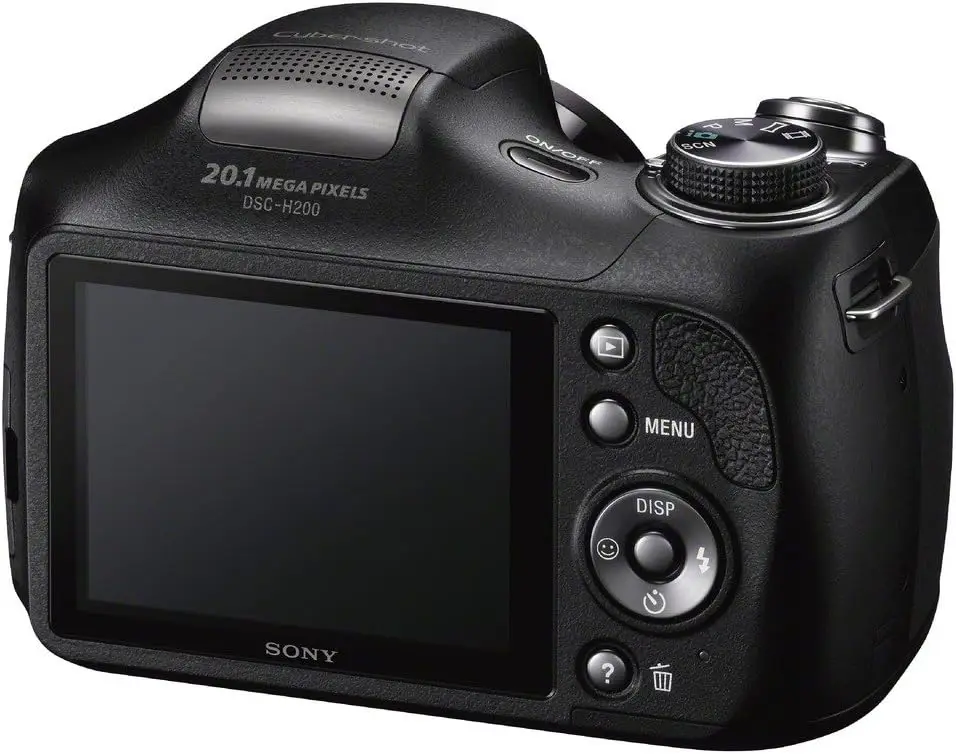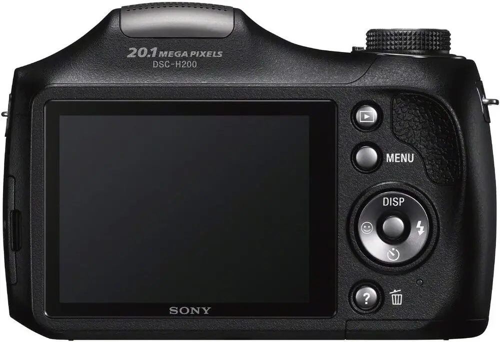The Sony DSC-H200 is a digital bridge camera that combines versatility with user-friendly features. It features a 20.1-megapixel Super HAD CCD sensor that delivers detailed image capture, paired with a powerful 26x optical zoom lens (27-702mm equivalent) suitable for both wide-angle and telephoto photography. The camera uses SteadyShot Optical Image Stabilization technology to minimize blur in handheld shots. It records images in 3:2, 4:3, and 16:9 aspect ratios and supports JPEG still image format. The rear panel includes a 2.7-inch TFT LCD screen for live view and menu navigation. For storage, it uses Memory Stick PRO Duo and SD/SDHC cards. Connectivity options include USB 2.0 for data transfer to computers. The camera supports ISO sensitivity from 100 up to 3200, albeit with increased noise at higher settings. It runs on AA batteries, providing convenience and easy replacement. Video recording is limited to standard definition at 640x480 pixels at 30fps.