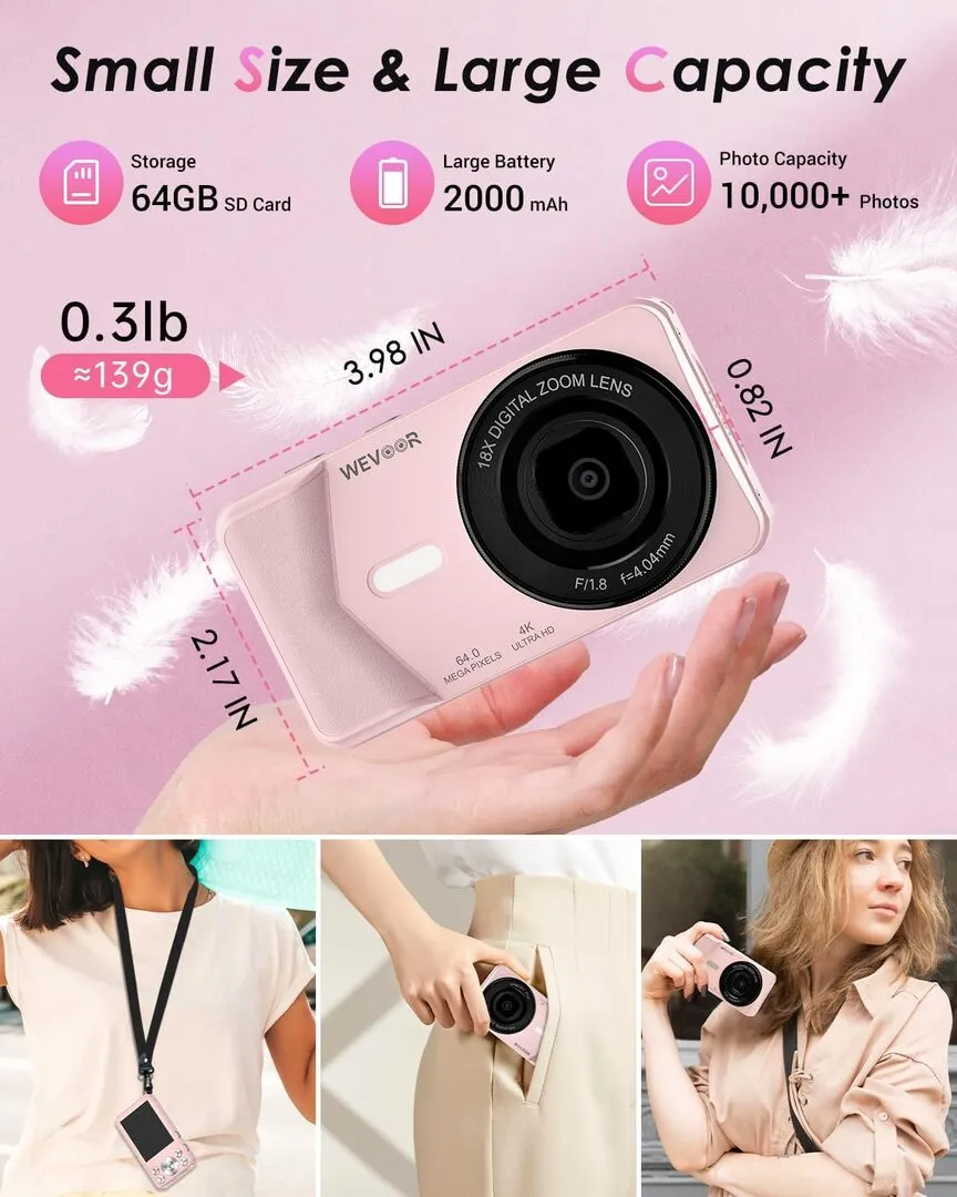 | Built-In Media | 1x Digital Camera, 1x 64GB TF Card, 1x USB Cable, 1x Card Reader, 1x Lanyard, 1x Storage Bag, 1x User Manual |