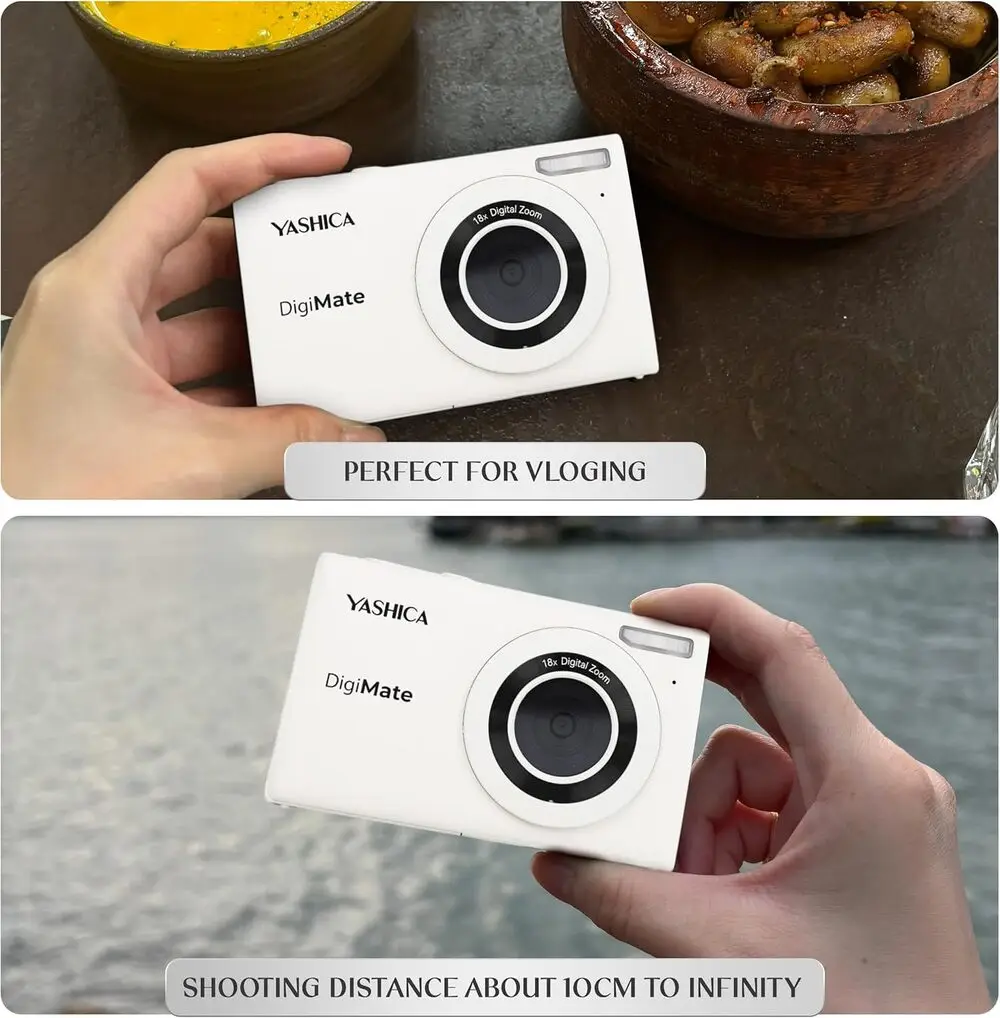 The Yashica DigiMate offers ease of use with a fully automatic operation perfect for entry-level users. Its compact and lightweight form factor enhances portability for everyday carry. The 3x optical zoom lens provides versatility in framing without degrading image quality. The camera's SD card support offers compatibility with widely available memory cards for convenient storage. Built-in features like a flash, face detection, and scene modes improve photo outcomes in various conditions. Additionally, the battery life supports moderate shooting sessions, making it practical for casual outings.