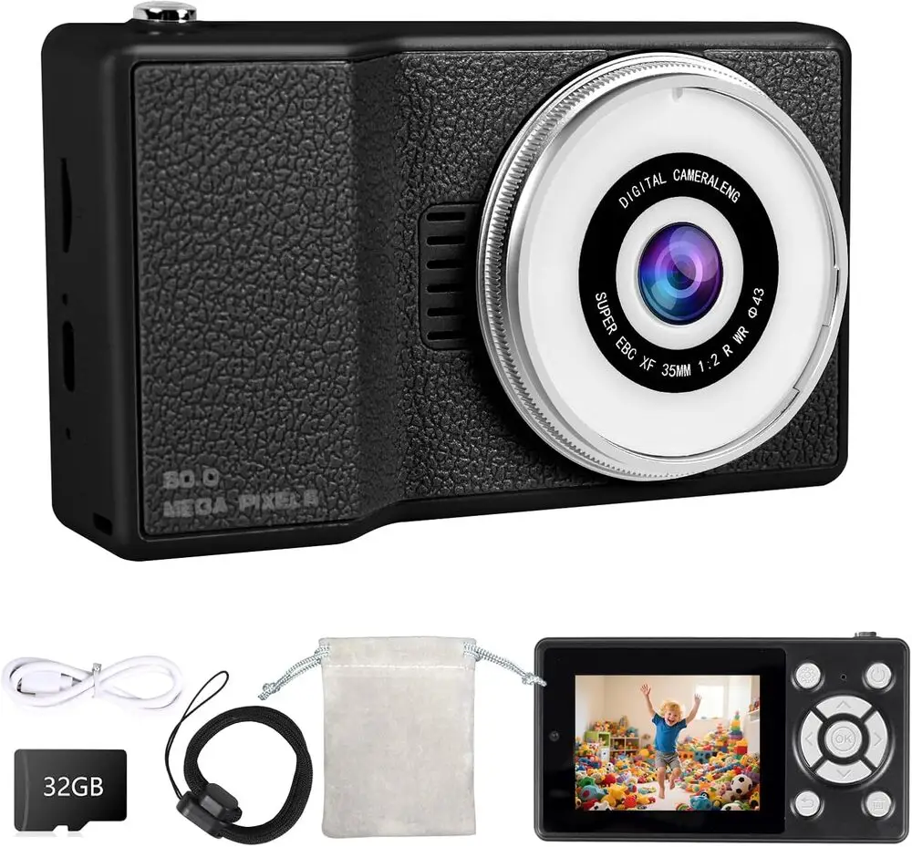Built-In Media | 1 x Compact small digital camera,1 x 32G TF card, 1 x Lanyard & Dust-proof bag, 1 x Type-C charging cable |