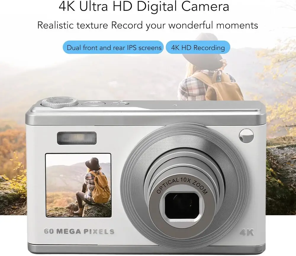 The camera's versatile zoom and wide-angle lens allow for diverse shooting perspectives.