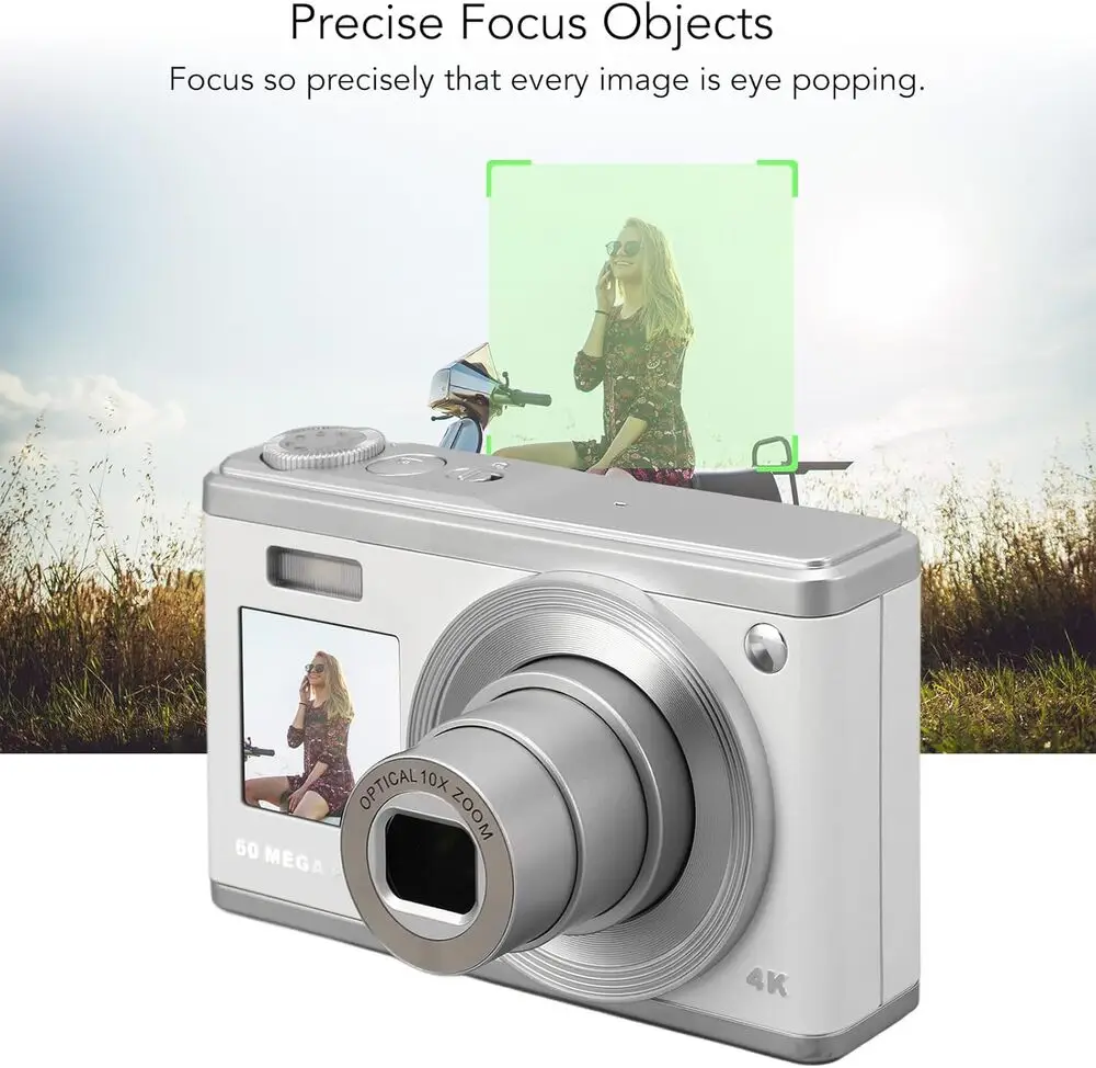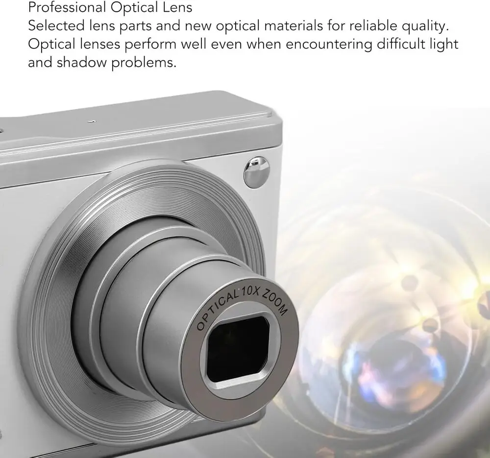 Camera Lens | This digital camera features a versatile zoom lens with 10x optical zoom and 16x digital zoom, allowing for close-up shots and capturing distant subjects. It also includes autofocus and anti-shake technology for sharp images in various lighting conditions. |