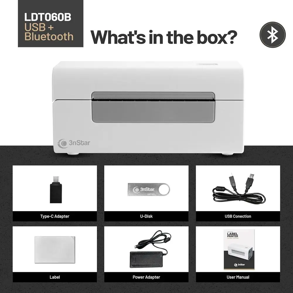 Included Components | Printer, Power Cord, AC Adapter, USB Cable, USB Type-C to Type-A Adapter, Sample Roll of Labels, USB Drive (with Drivers, Manuals, Tutorials) |