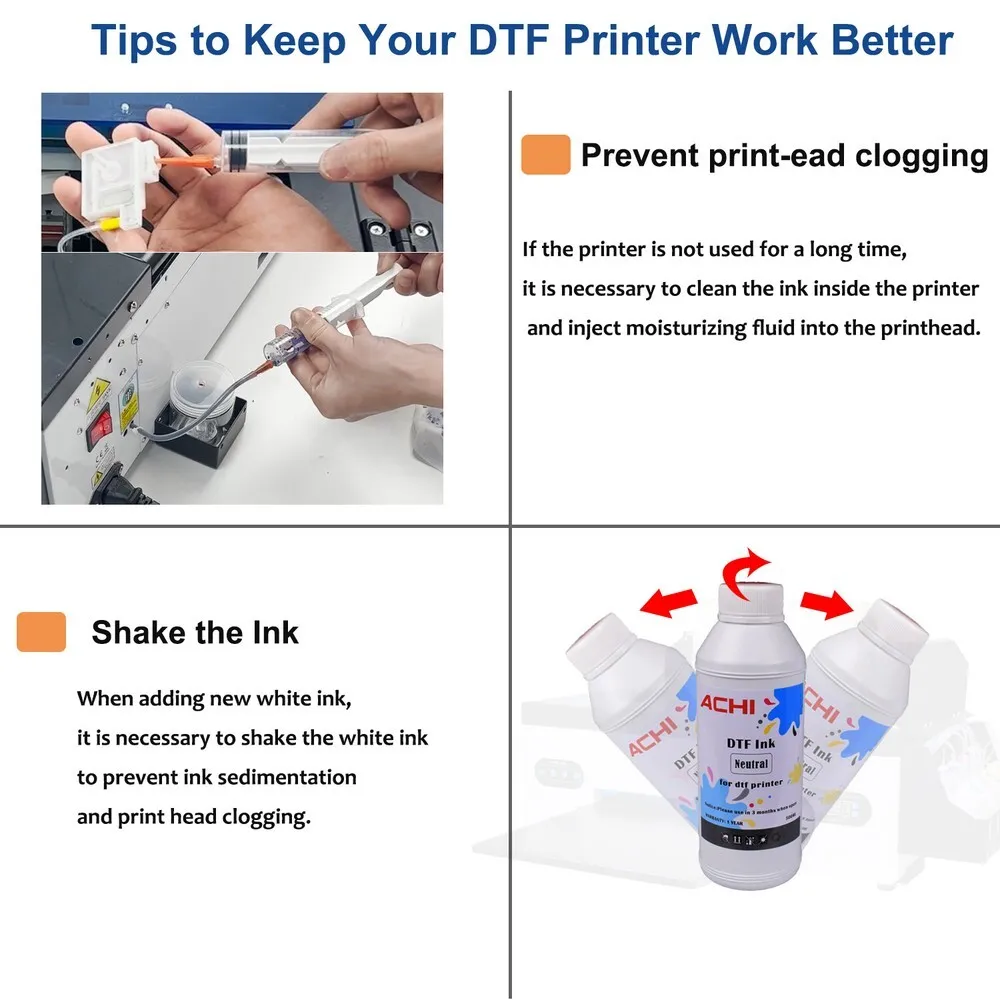 Due to limited publicly available data, the full capabilities of the ACHI DTF printer remain unclear. Resolution and print speed might not meet high-end professional standards. It may lack advanced connectivity features such as wireless or network printing. The absence of detailed multifunctional capabilities, like scanning or copying, restricts its usability. Replacement parts and related accessories could be hard to source due to the device's limited production. Technical support and documentation might not be comprehensive compared to newer models.