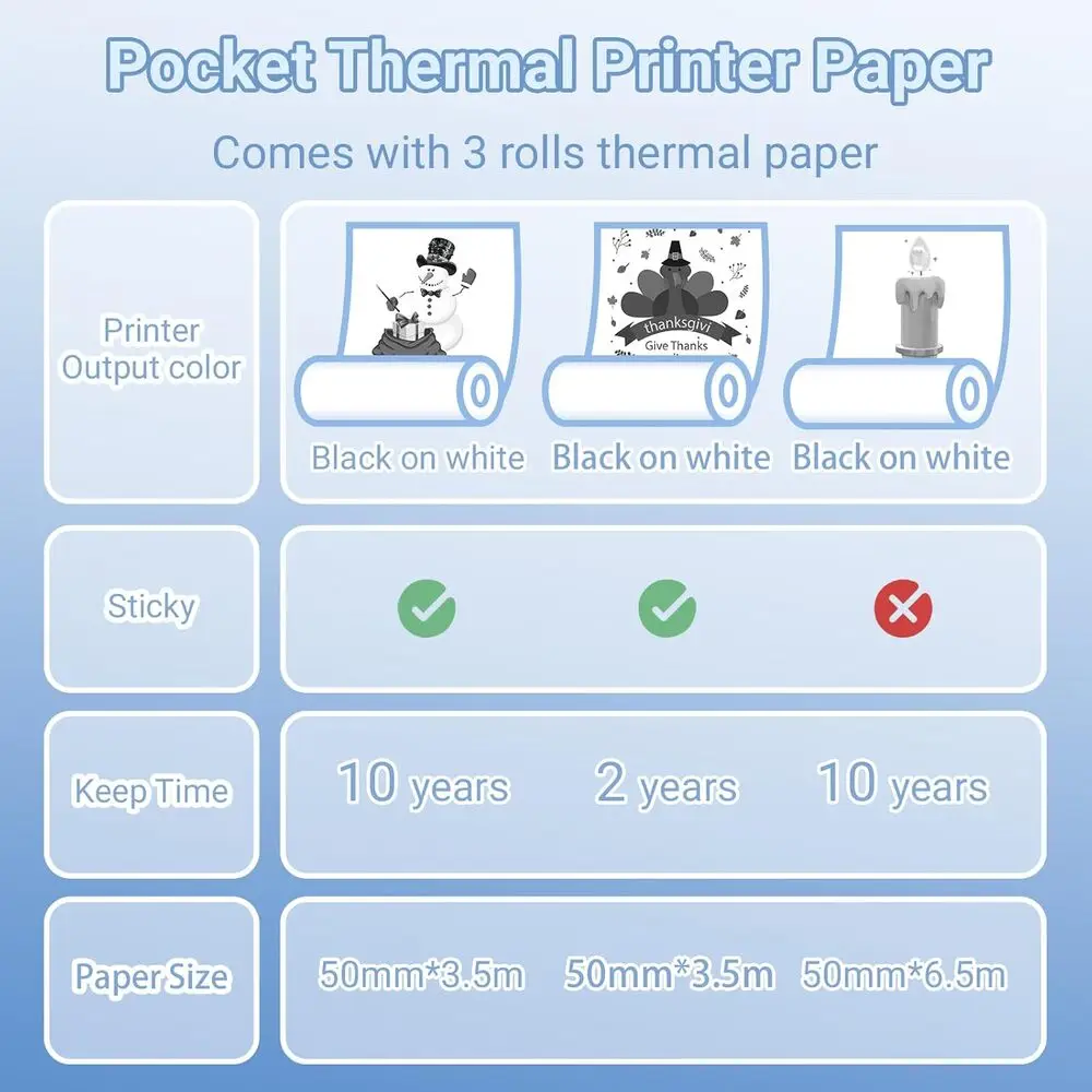 Included Components | 1 Mini Printer, 3 Rolls thermal Paper, USB Cable |