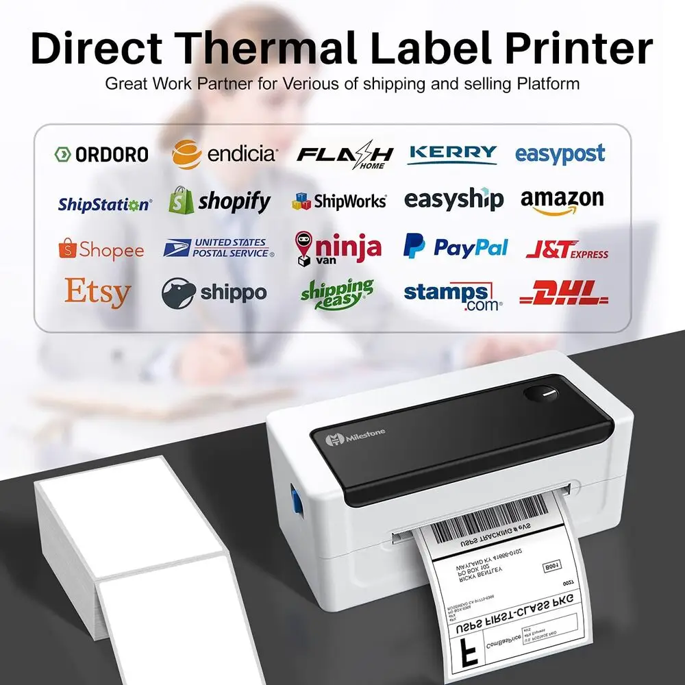 Included Components | 10 pcs 4" x 6" Thermal Shipping Labels for Test, Label Holder, Label Printer, Power Supply & USB Cabel, User Manual and U Disk for Installtion |