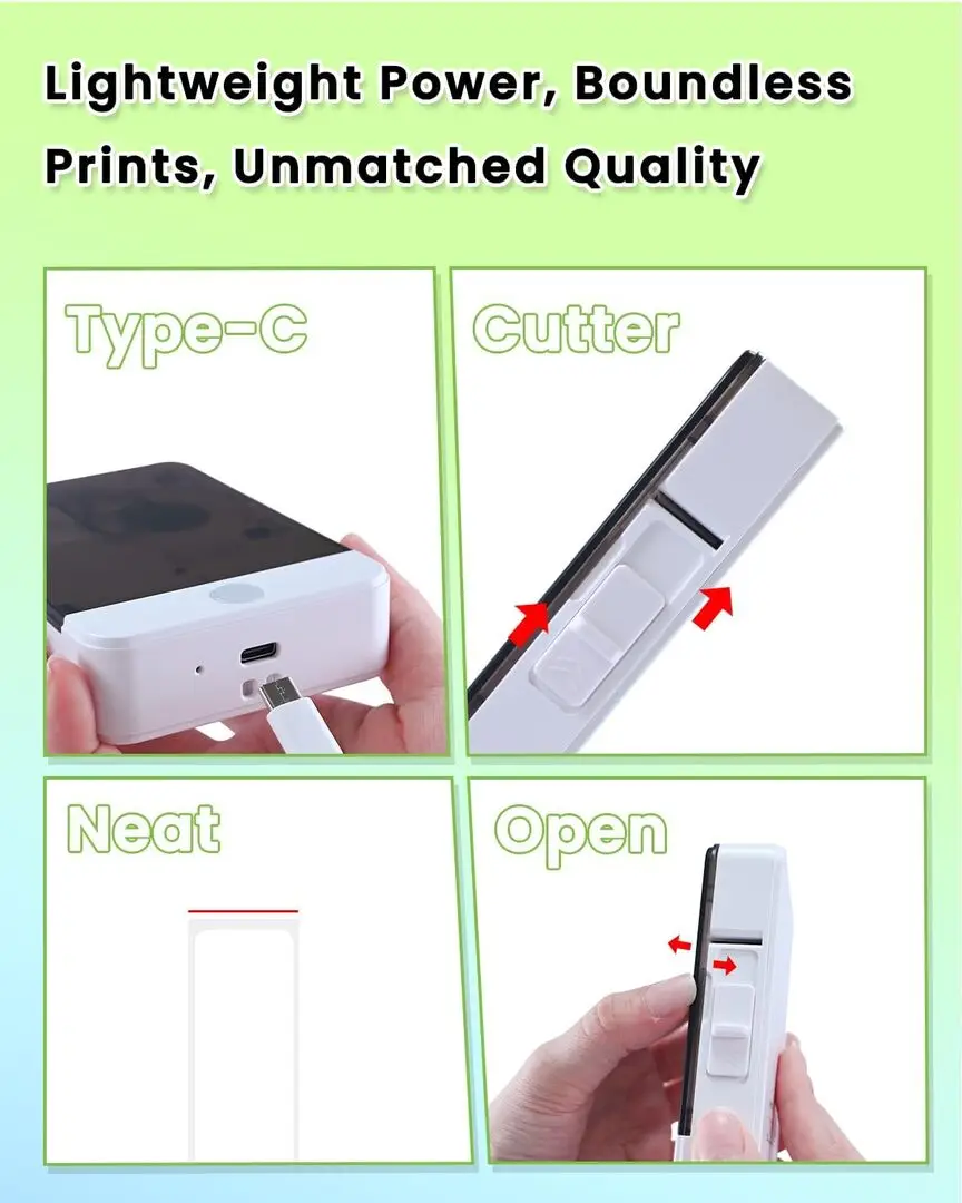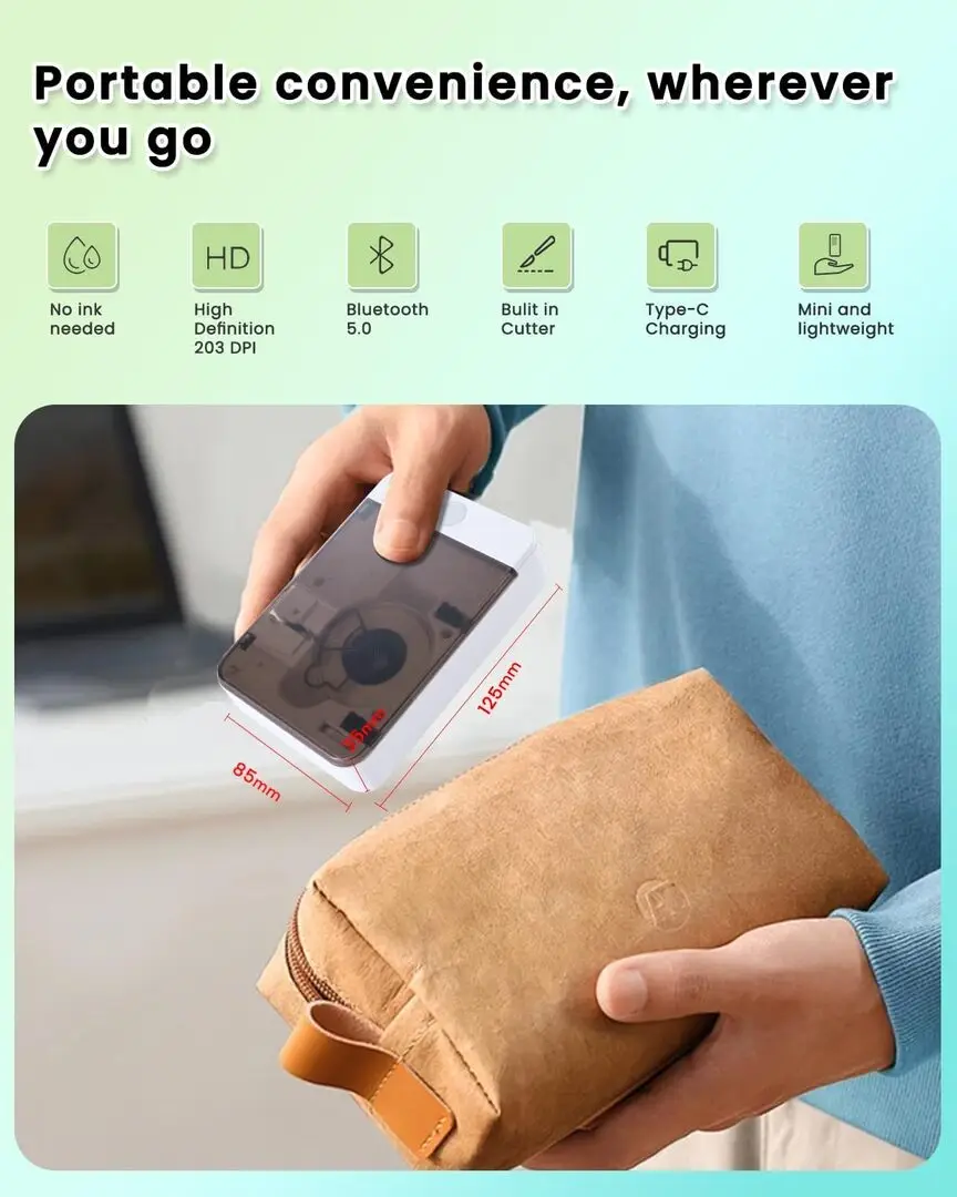 Ergonomic keyboard layout improves typing efficiency and user comfort during extended use. Battery operation adds flexibility for on-the-go printing without dependency on power outlets.