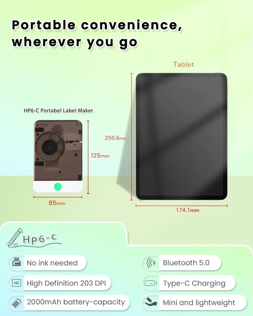 The HP6-C excels in delivering crisp, durable labels with thermal printing technology, reducing the need for ink cartridges. Its compact and lightweight design makes it highly portable within office spaces. The device supports multiple label sizes, enhancing versatility for different labeling tasks. The monochrome LCD screen offers clear navigation and label preview before printing, minimizing errors.
