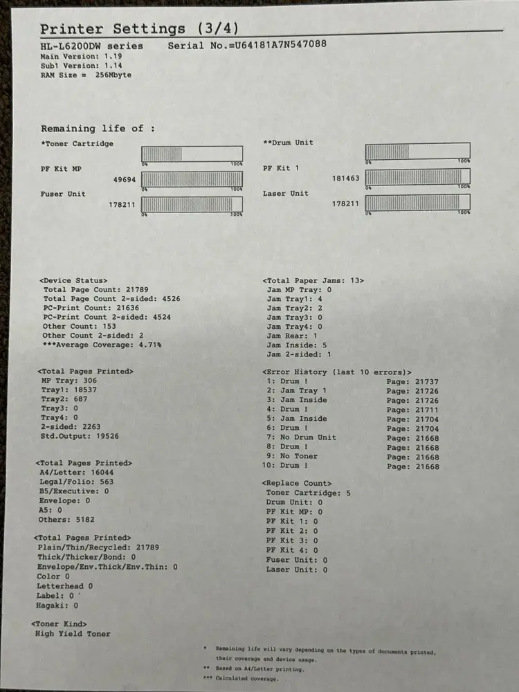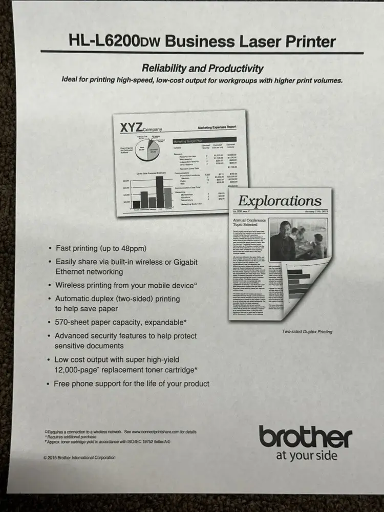 The HL-L6200DW offers fast print speeds of up to 48 pages per minute, increasing office productivity. Its automatic duplex feature efficiently saves paper and operational costs. The printer supports wireless networking, enabling flexible placement without cable restrictions. High-capacity toner cartridges reduce replacement frequency and lower the cost per page. The device’s compact design facilitates easy placement in tight office spaces. Moreover, it provides advanced security features such as secure function lock and network protocol support to protect sensitive information.