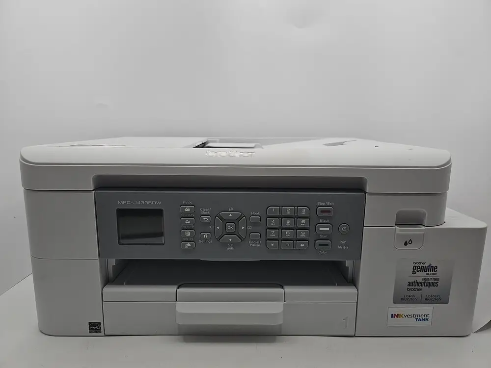 The MFC-J4335DW boasts fast printing speeds up to 20 pages per minute in black and 19 pages per minute in color, enhancing office productivity. Its wireless connectivity options facilitate seamless integration into various network environments without the need for cables. The printer’s automatic duplex feature reduces paper usage, promoting environmental friendliness and cost savings. It includes a 150-sheet paper tray capacity, minimizing the frequency of paper refills. The user-friendly 1.8-inch color display simplifies navigation of printer settings and operations. Brother's INKvestment Tank ink system lowers ink costs with high-capacity cartridges, supporting economical printing requirements.