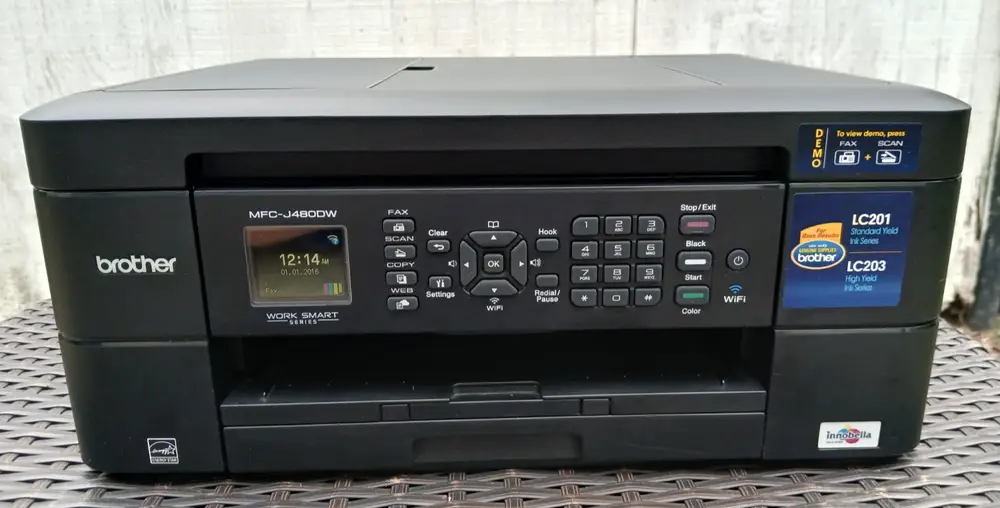 The Brother MFC-J480DW is an all-in-one inkjet printer designed for small office and home office environments. It incorporates print, scan, copy, and fax functions in a compact footprint. The device uses four individual ink cartridges (cyan, magenta, yellow, and black) to optimize ink usage and reduce costs. It supports wireless connectivity via Wi-Fi and Wi-Fi Direct, allowing mobile device printing without a network. The MFC-J480DW offers automatic duplex (double-sided) printing to save paper and improve efficiency. Its print resolution reaches up to 6000 x 1200 dpi for high-quality color prints.