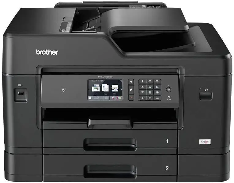 Additional technical features include duplex (two-sided) printing to reduce paper usage, a 3.7-inch color touchscreen for easy navigation, and compatibility with Windows and Mac operating systems. The MFC-J6930DW supports various paper types and finishes, meeting diverse office document needs. This model balances high-quality output and energy efficiency with its ENERGY STAR certification.