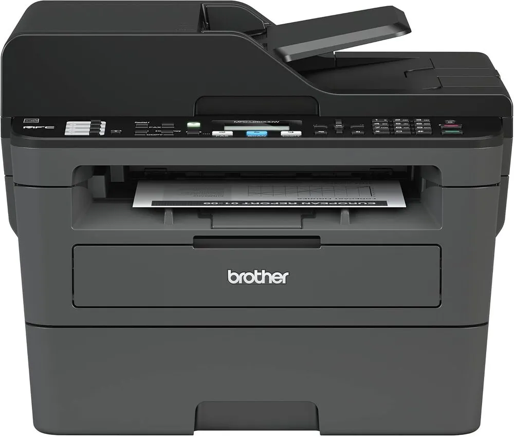 The Brother MFC-L2690DW is a monochrome multifunction laser printer designed for efficient office printing, scanning, copying, and faxing. It uses a laser printing technology with a maximum print resolution of 2400 x 600 dpi enhanced by Brother's resolution feature. The device supports automatic duplex (double-sided) printing and offers a print speed of up to 30 pages per minute. Connectivity options include USB 2.0, Ethernet, Wi-Fi, and Wi-Fi Direct, facilitating versatile network integration for multiple users. Its flatbed scanner offers a color scanning functionality at up to 1200 x 2400 dpi optical resolution. The device includes a 250-sheet standard paper tray and a 50-sheet automatic document feeder (ADF) for increased productivity. It supports various media sizes and types including envelopes and labels, beneficial for diverse office tasks.