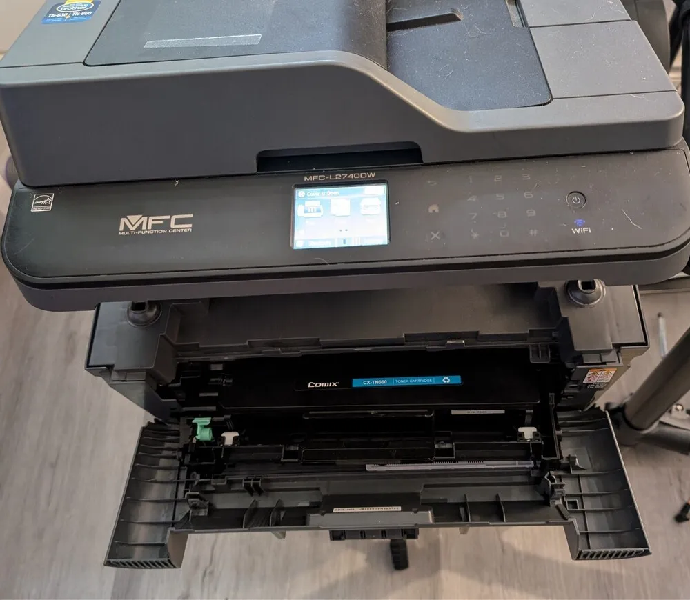 The Brother MFC-L2740DW is a compact multifunction monochrome laser printer designed for office environments requiring reliable printing, scanning, copying, and faxing capabilities. It employs a laser printing technology with a resolution of up to 1200 x 1200 dpi for sharp, clear text and graphics. The device features an automatic document feeder (ADF) with a capacity of 50 sheets, enabling efficient scanning and copying of multi-page documents. It supports duplex printing to reduce paper consumption and improve productivity. Connectivity options include USB 2.0, Ethernet, and built-in Wi-Fi, facilitating flexible network integration and wireless printing from mobile devices. The device operates through a monochrome laser engine and uses a toner cartridge with a standard yield of approximately 1,200 pages.