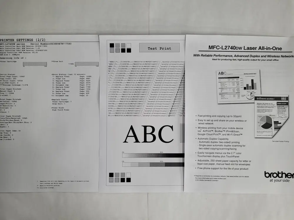 The Brother MFC-L2740DW offers fast print speeds of up to 32 pages per minute, optimizing workflow efficiency. Its automatic duplex printing reduces paper usage and operational costs. The wireless and Ethernet connectivity provide versatile options for networked environments and mobile device printing. The 50-sheet automatic document feeder streamlines scanning and copying of multi-page documents without manual intervention. Its compact design saves space while still delivering professional-quality print outputs. Additionally, high-yield toner cartridges are available, extending usage time and minimizing supplies replacement frequency.