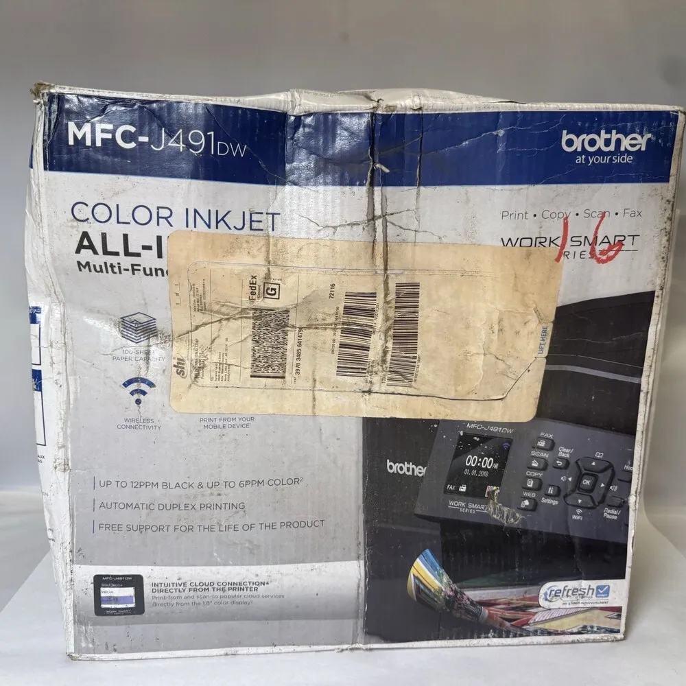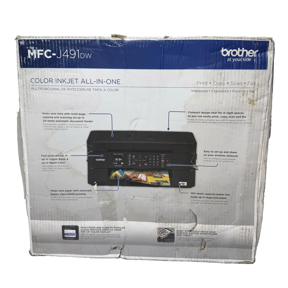 While the MFC-J491DW uses four separate ink cartridges, the cost per page can be higher compared to some laser printers. The print speed is moderate, with up to 12 pages per minute in black and 10 pages per minute in color, which may not meet very high volume printing demands. It lacks advanced touchscreen interfaces, utilizing instead basic LCD for control, which may limit ease of use. The fax functionality is limited to standard telephone line support only, without advanced digital fax features. The paper tray capacity, while adequate, is smaller than some competitors in similar classes. The device does not support automatic duplex scanning, requiring manual page flipping for double-sided scanning.