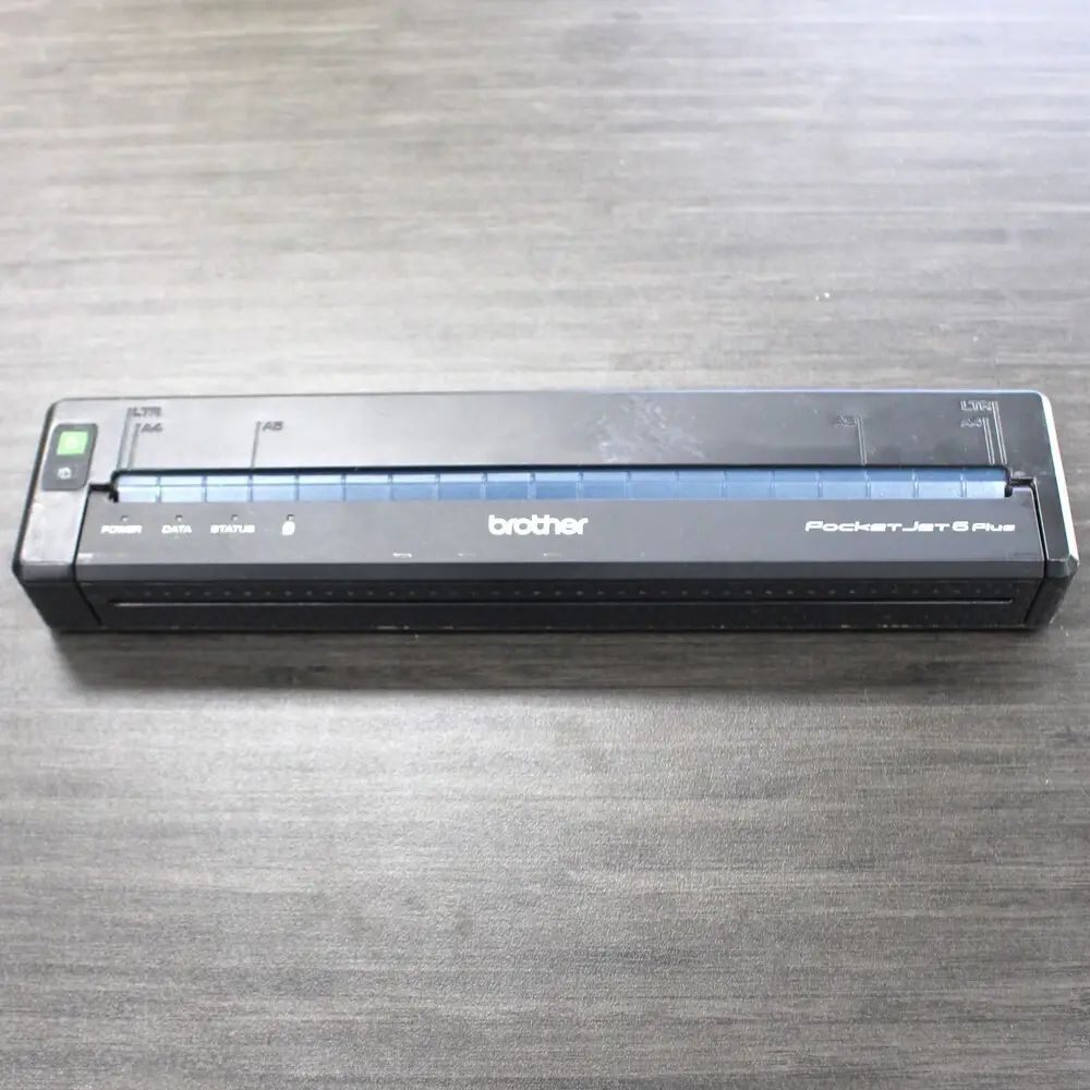 The Brother PocketJet PJ-663 is a compact, full-page-width thermal printer designed specifically for mobile professionals. It incorporates direct thermal printing technology, allowing for quiet and fast monochrome print output without the need for ink or toner. The printer supports resolutions up to 203 dpi (dots per inch), delivering clear and sharp print quality suitable for text documents and simple graphics. Its full-page 8.5-inch wide printhead enables printing of standard letter-sized pages in portrait orientation. Connectivity options include serial and parallel interfaces, facilitating integration with a variety of mobile devices and legacy office equipment. The PJ-663 is powered through an external power supply or rechargeable battery packs, enhancing its portability for field use.