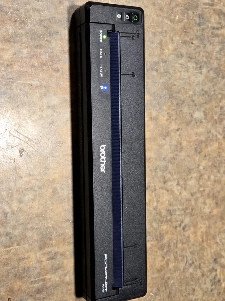 The Brother PocketJet PJ763MFI is a full-page mobile thermal printer designed for high-quality, on-the-go document printing. Employing direct thermal printing technology, it ensures fast, reliable output without the need for ink or toner cartridges. The device supports mobile connectivity through multiple interfaces including Bluetooth, Wi-Fi, and USB, enabling seamless printing from various devices such as smartphones, tablets, and laptops. Featuring a compact and lightweight design, it's engineered for portability and rugged use in field applications. It supports resolutions up to 300 dpi, delivering clear, legible text and graphics. The printer utilizes standard thermal paper rolls and offers efficient power management with a rechargeable battery.