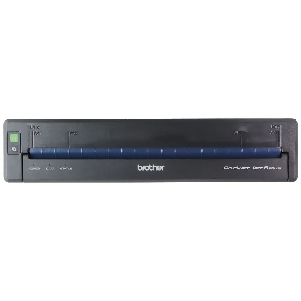 The Brother PocketJet 6 Plus PJ623 is a compact, portable thermal printer tailored for on-the-go office printing applications. It utilizes direct thermal print technology with a resolution of 300 dpi, ensuring sharp and clear documents. The device supports a printing speed of up to 8 pages per minute, optimized for mobile efficiency. Connectivity options include USB 2.0, Bluetooth, and Wi-Fi interfaces that facilitate wireless printing from multiple devices. It can handle various media sizes, primarily focusing on A4 (8.27" wide) continuous paper through its roll feed system. The printer’s compact design emphasizes portability with a rugged, impact-resistant casing suited for field environments.