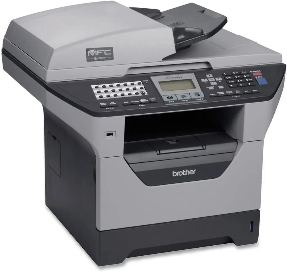 The Brother MFC-8460N is a multifunction laser printer designed for office use, combining printing, scanning, copying, and faxing functionalities. It supports network connectivity via integrated Ethernet, allowing multiple users to share the device efficiently. The printer delivers a print speed of up to 24 pages per minute (ppm) in black and white, with a resolution of up to 1200 x 600 dpi that enables clear and sharp text output. It incorporates a 250-sheet standard input tray with a 35-sheet automatic document feeder (ADF) for convenient batch scanning and copying. The device is powered by a 200 MHz processor and 64 MB of RAM to handle complex print jobs and maintain smooth multitasking performance. With built-in fax capabilities supporting ITU-T Group 3 and 33.6 Kbps transmission speeds, it integrates well into traditional office communication workflows.