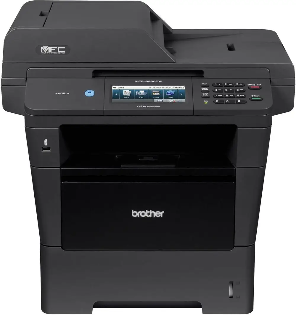 The MFC8950DW is a monochrome printer and does not support color printing, limiting its use for color document needs. It has moderate memory (up to 256MB) which may restrict very large or complex print jobs. The print resolution, while adequate for text and office graphics, may not satisfy high-end photo printing requirements. Its Automatic Document Feeder (ADF) capacity is 50 sheets, which is modest for high volume scanning or faxing tasks. The device is relatively bulky and may require significant desk space. Some advanced network features may require firmware updates or additional configuration.