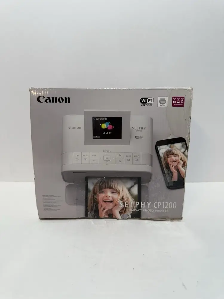 The Canon Selphy CP1200 is a compact dye-sublimation photo printer designed for quick and high-quality photo printing. It utilizes a dye sublimation thermal transfer method that enables vibrant color reproduction with smooth gradations. The printer supports maximum print resolution up to 300 x 300 dpi, ensuring detailed photo outputs. Connectivity options include USB and Wi-Fi, offering flexibility for printing from PCs, smartphones, and tablets. It supports various media sizes including postcard, L, and credit card size prints. The device includes an integrated LCD for easy navigation and supports direct printing from compatible cameras and memory cards.