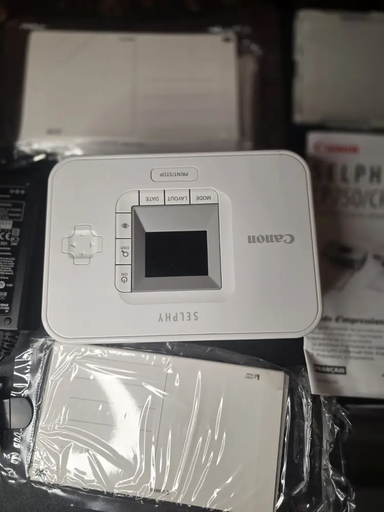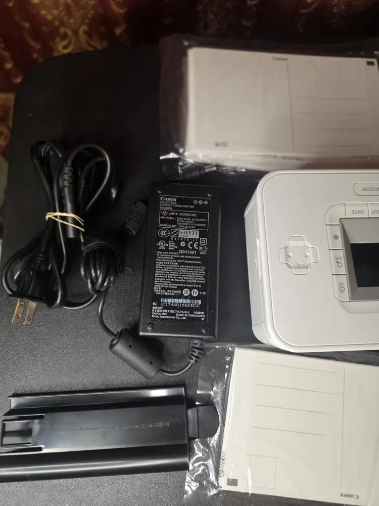 The printer requires specific dye-sublimation color ribbons and photo paper kits designed for the Selphy CP series.