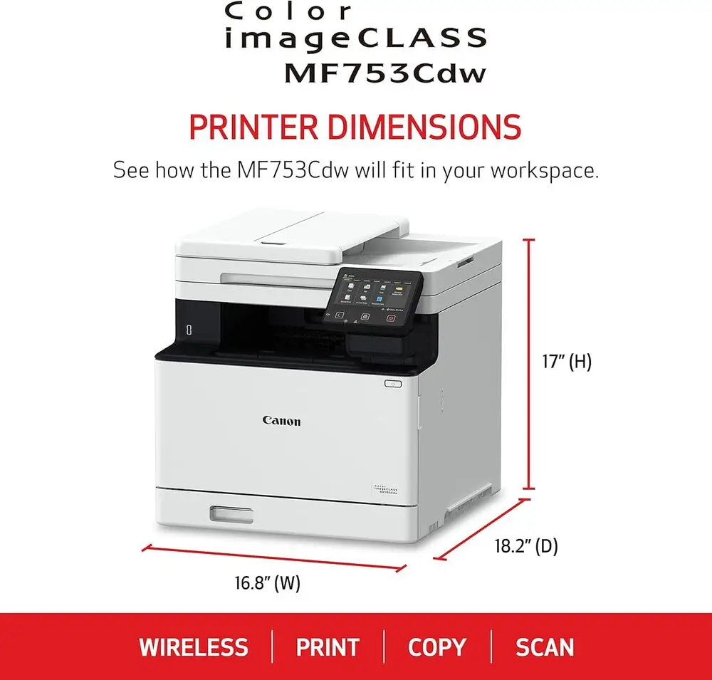 | Included Components | Cartridge 069 CMY: Starter 1,100 Yield / Black, Standard: 2,100 Yield, Documentation, Fax Cord, MF753Cdw Product, Power Cord |