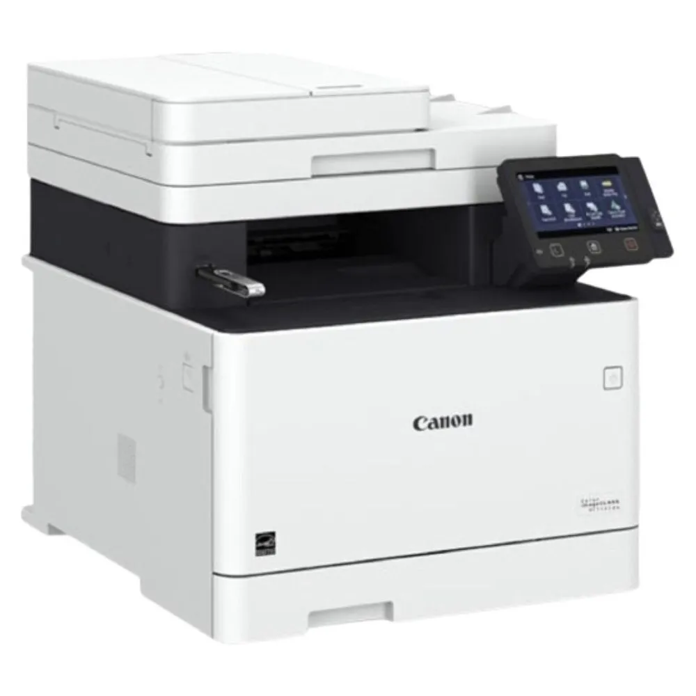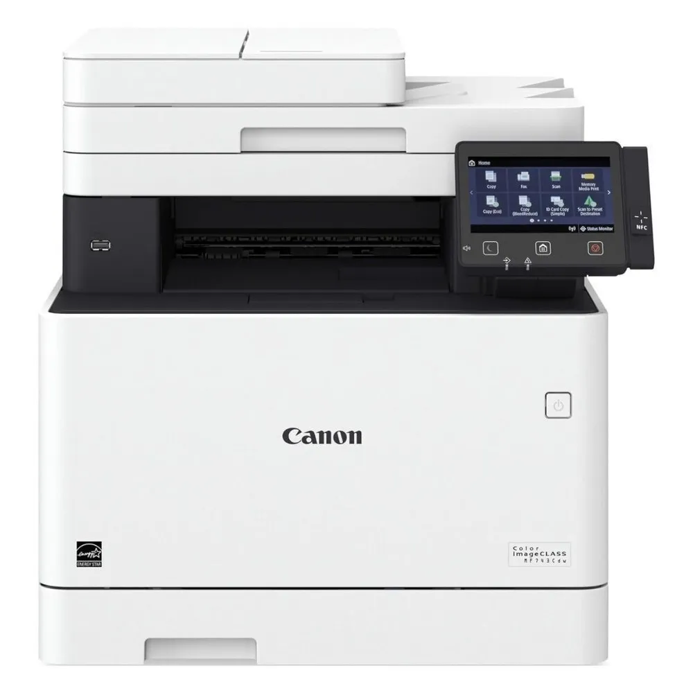 The Canon ImageCLASS MF654Cdw is a versatile color multifunction laser printer designed for office environments requiring reliable printing, copying, scanning, and faxing capabilities. It features a robust 1.07 GHz dual-core processor and 1 GB RAM to handle complex print jobs efficiently. The printer supports wireless connectivity including Wi-Fi and NFC, enabling mobile printing from multiple devices. It offers print speeds up to 22 pages per minute in both color and black-and-white, with a maximum resolution of 600 x 600 dpi. Equipped with a 5-inch color touchscreen, it provides intuitive access to various functions and settings. The device supports automatic duplex (2-sided) printing, which helps reduce paper usage and operational costs.