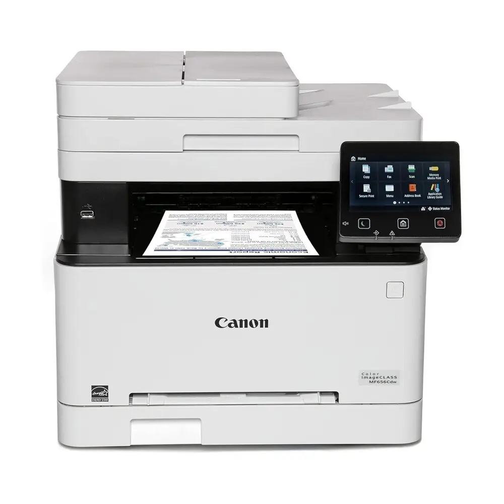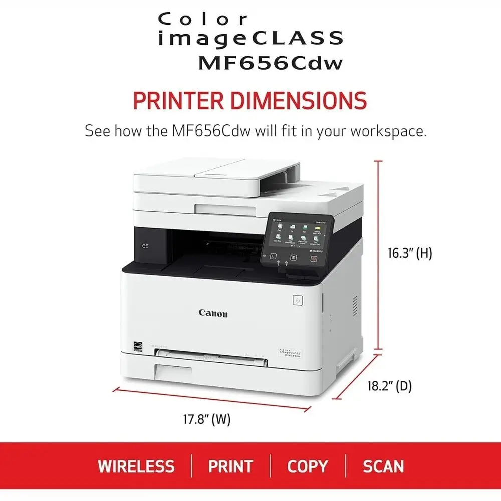 The Canon MF656Cdw is a color laser multifunction printer designed for office use, supporting printing, scanning, copying, and faxing.
