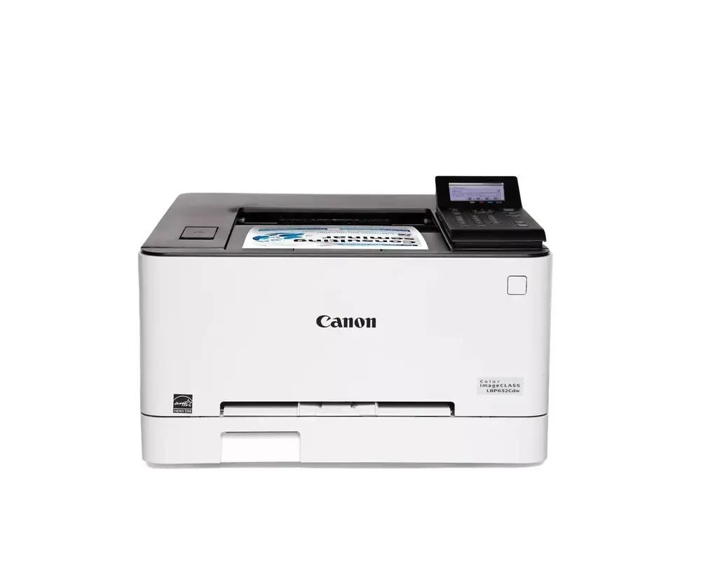 The Canon LBP632Cdw is a compact color laser printer designed for office environments requiring reliable and efficient printing solutions. It supports high-quality color output with a print resolution of up to 600 x 600 dpi enhanced by V2 technology for finer image quality. The device offers a print speed of up to 21 pages per minute for both color and monochrome printing, ensuring productivity in small to medium workloads. Connectivity options include standard USB 2.0, Ethernet, and wireless 802.11b/g/n for flexible placement and network integration. The printer is compatible with various operating systems, including Windows, macOS, and Linux. Equipped with a 250-sheet input tray and a 100-sheet multipurpose tray, it supports various paper sizes and types to accommodate diverse printing needs.