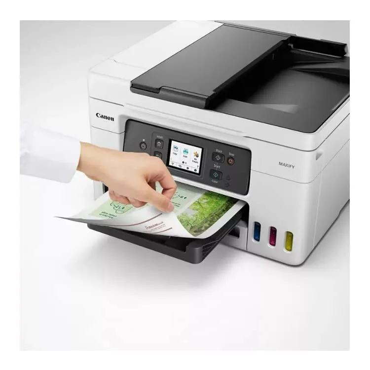 The Canon Maxify GX4020 is an office inkjet printer designed for small to medium-sized businesses, offering high-volume printing with cost efficiency. It features a refillable ink tank system that reduces printing costs significantly and provides high page yields per refill. Equipped with an automatic document feeder (ADF), it supports scanning and copying functionality, enhancing office productivity. Connectivity is versatile with options including USB, Ethernet, and Wi-Fi, allowing easy network integration and wireless printing. The printer supports a maximum print resolution of up to 600 x 1200 dpi, ensuring crisp and clear text and images. It handles various media sizes and types, accommodating printing needs from letters to envelopes and labels.