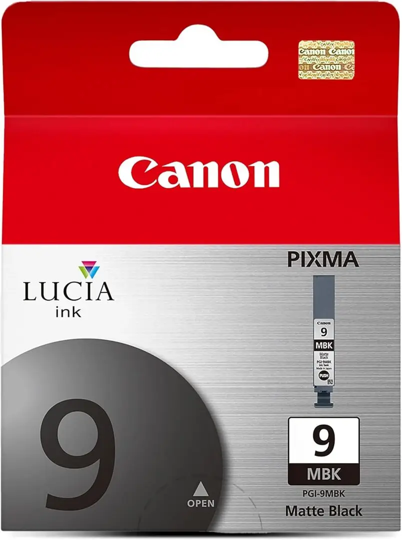 The Canon PGI-9 MBK uses pigment-based matte black ink, which offers better durability and water resistance compared to dye-based inks.