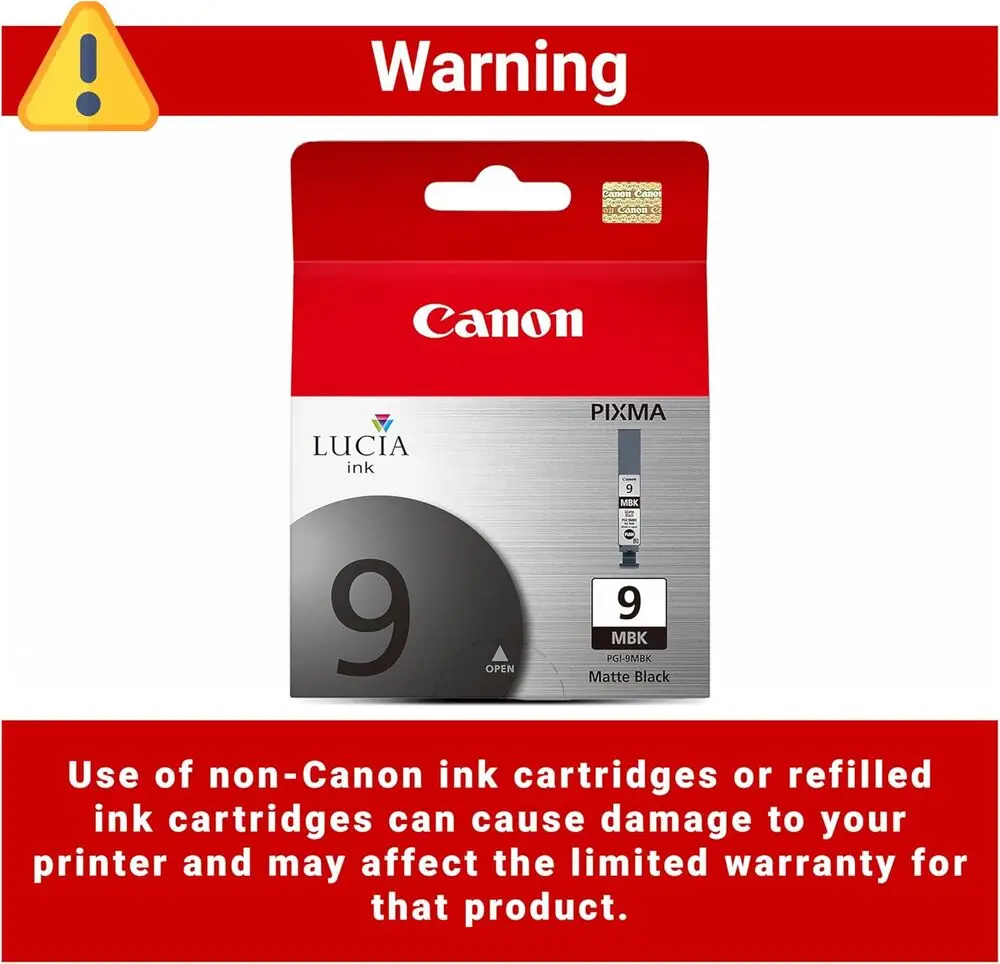Officially, Canon does not support refilling PGI-9 MBK cartridges, and refilling may affect print quality or printer performance.