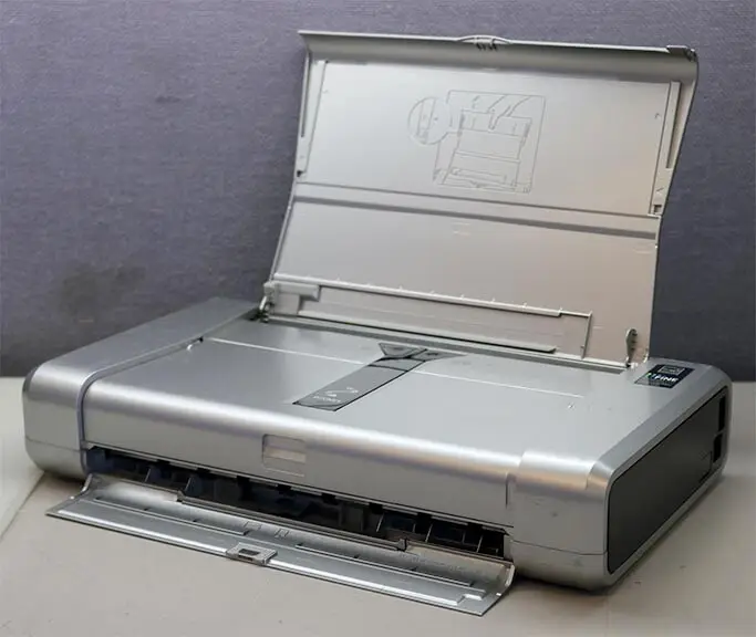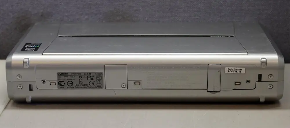 The Canon Pixma iP100 uses inkjet printing technology with a 4-color hybrid ink system.