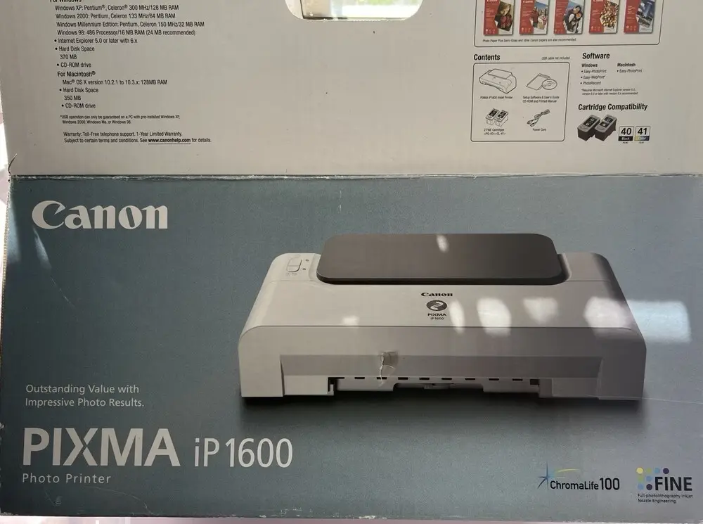 Internally, the printer uses Canon's FINE (Full-photolithography Inkjet Nozzle Engineering) cartridge technology that allows precise ink droplet placement for sharper images. It does not include scanning or copying functions, focusing solely on delivering high-quality color and black-and-white prints. The PIXMA IP1600 is compatible with various Windows and Mac operating systems available at its release time. It is a reliable option for users seeking affordable, straightforward printing solutions without network or wireless connectivity.