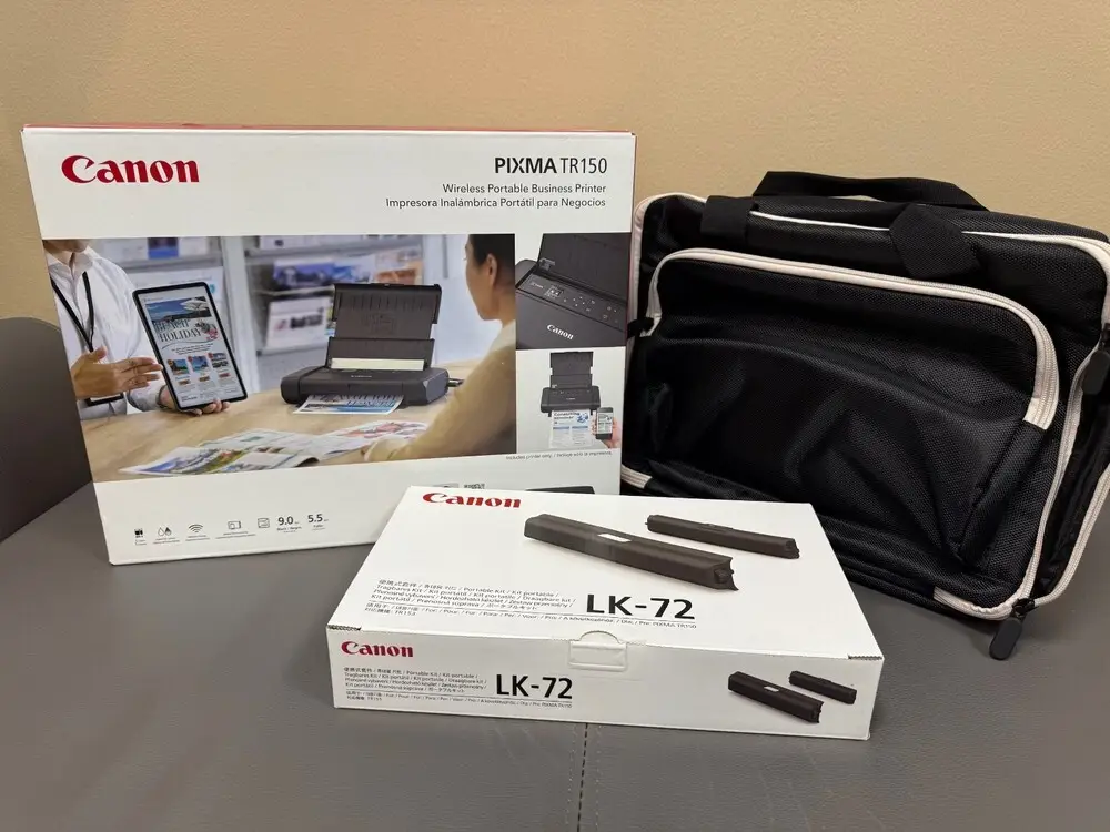 | Included Components | PIXMA TR150 Wireless Portable Printer Setup CD, Manual, and Other Documentation Set of Ink Tanks (PGI-35 BK & CLI-36 CL) Print Head USB Type-C to USB Type-B Cable Power Cord |