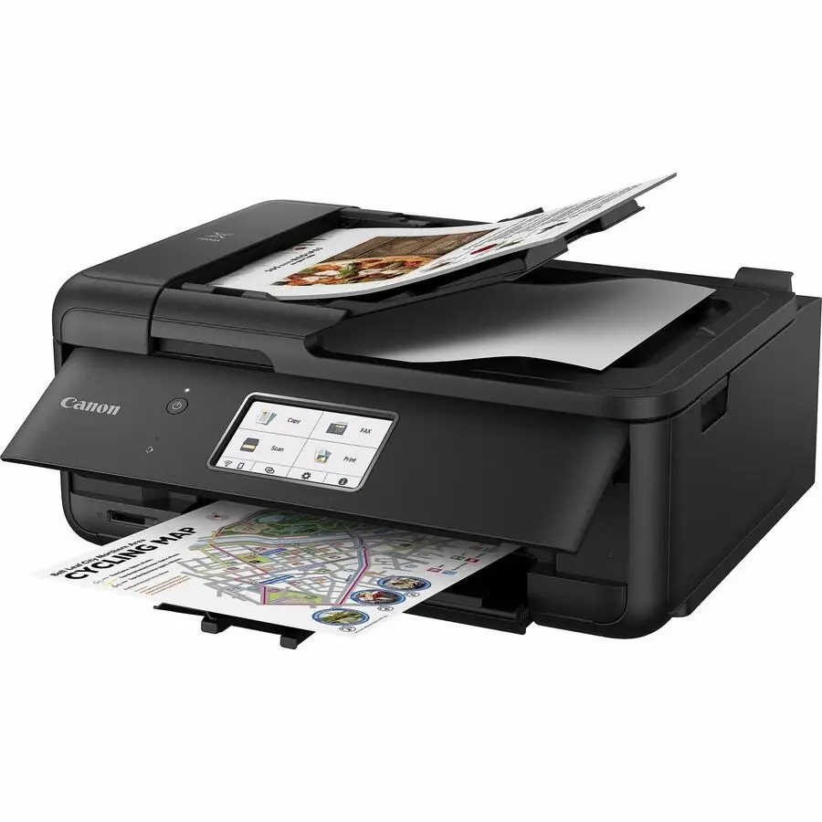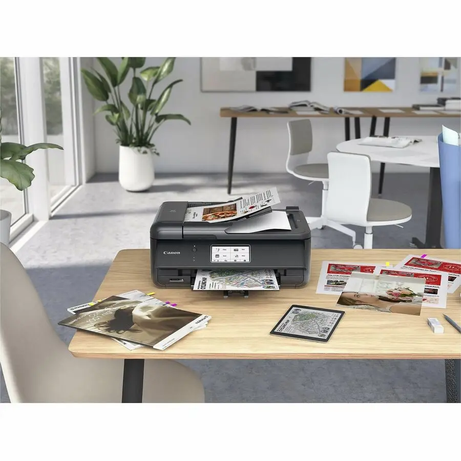 The Pixma TR8620a excels in providing high-resolution prints, offering detailed images and sharp text clarity. The wireless print options, including AirPrint and Mopria, enhance usability across multiple devices without the need for cables. Its compact and stylish design fits well in small office environments. The device supports automatic duplex printing, reducing paper use and manual handling. It includes a touchscreen LCD for easy navigation and operation. The presence of an ADF streamlines multi-page document handling for improved productivity.