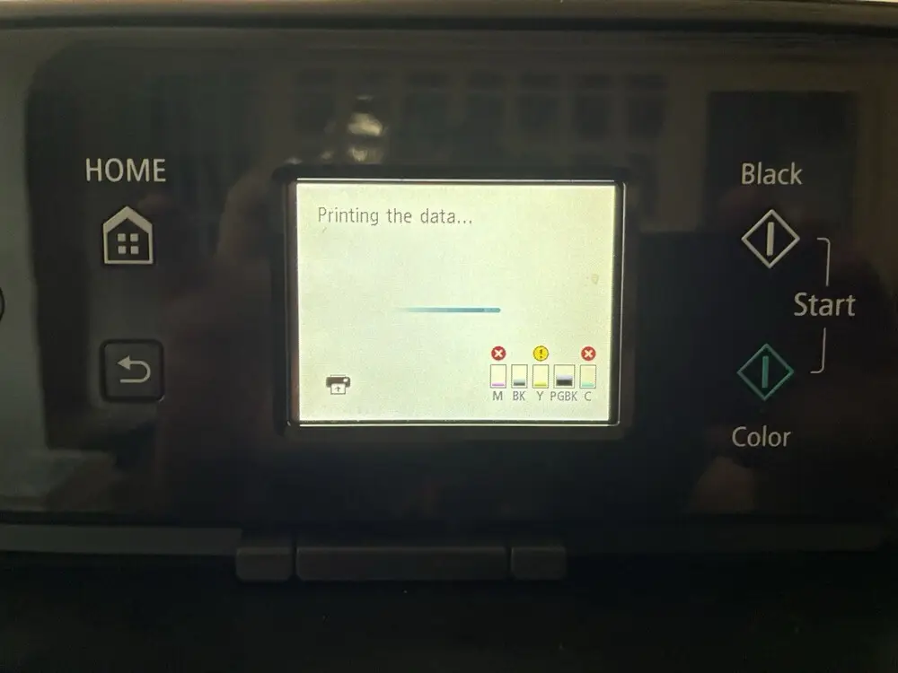 The Canon Pixma TS6120 uses a five-ink system, including separate dye-based color inks and a pigment black ink for sharp text printing.