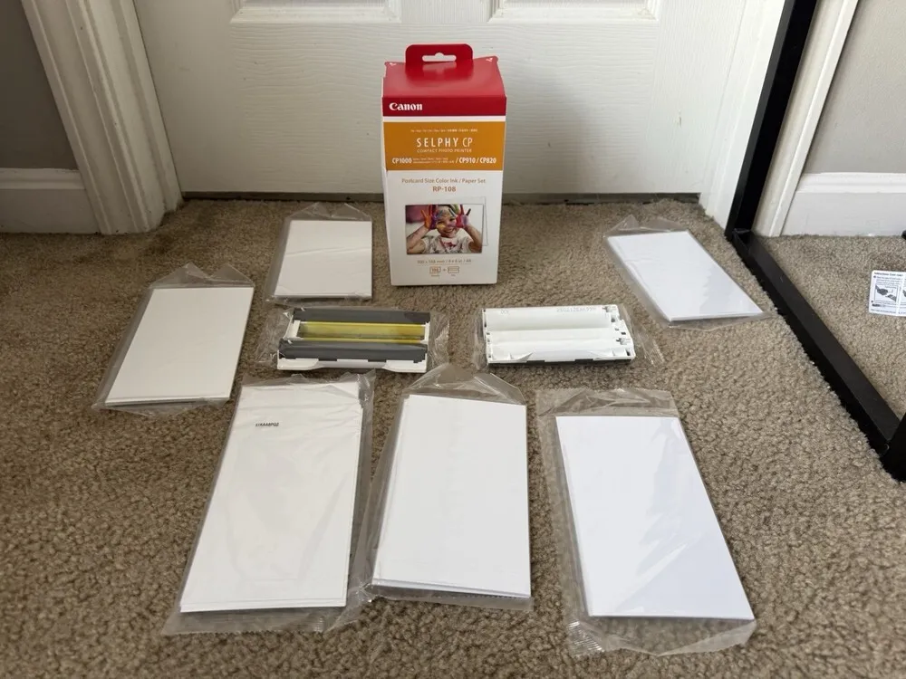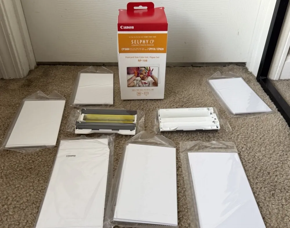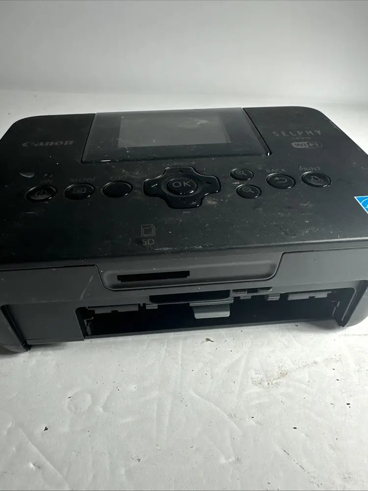 The Canon SELPHY CP910 is a compact dye-sublimation photo printer designed for instant, high-quality 4x6 inch prints. It utilizes a 3-panel dye sublimation print head that renders precise color gradations with deep clarity. The device supports multiple input methods including SD cards, USB flash drives, and direct wireless printing through AirPrint and Canon Print app. It features a 2.7-inch LCD screen for image preview and easy navigation. Print resolution is 300 x 300 dpi optimized with Canon’s Color ChromaLife 100+ technology for durable, fade-resistant photos. The printer boasts a rapid print speed, producing a photo in approximately 47 seconds, suitable for quick onsite photo printing needs.