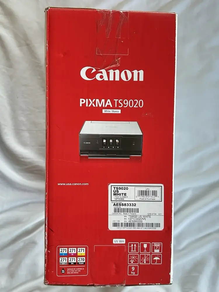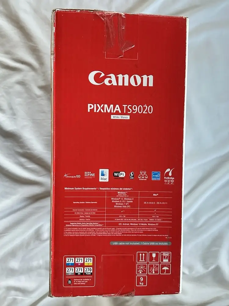 The Canon PIXMA TS9020 supports Wi-Fi, Bluetooth, and USB connections, enabling easy printing from various devices including smartphones, tablets, and computers.