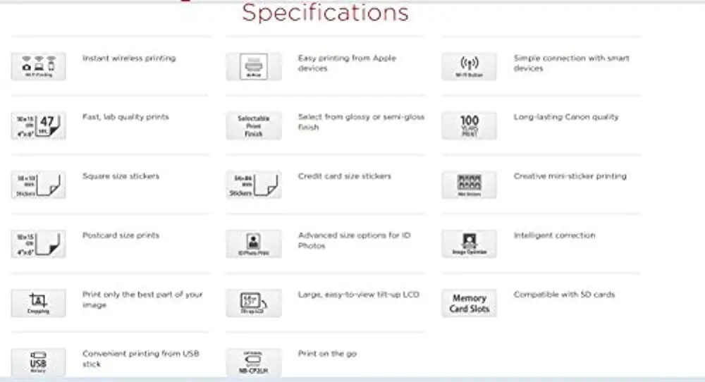 Included Components | SELPHY CP1200 Wireless Compact Photo PrinterCompact Power AdapterPaper Cassette (Postcard Size) |